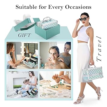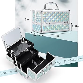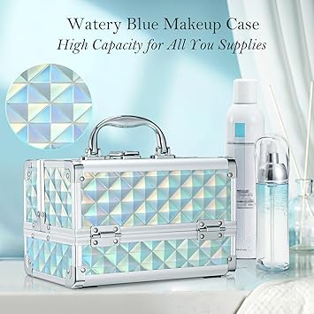 - Watery Blue Train Case: The surface of this makeup case is not only waterproof but also features a beautiful watery blue finish, making it an outstanding choice for safeguarding outdoor cosmetics. This special design not only provides protection but also adds a touch of style. When the case captures light from various angles, it creates an enchanting visual effect, causing the color to shift and change in hue, which enhances its overall appeal and makes it a delightful accessory for makeup enthusiasts.