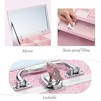 - Portable & Lockable Makeup Box Organizer: This makeup organizer case offers the convenience of portability, designed in a manageable size that's easy to carry. Accompanying this portable design is a generously sized, non-slip handle, ensuring a comfortable and secure grip when you're on the move. Furthermore, for added peace of mind, the case features a lockable mechanism, complete with a key. This locking function provides an extra layer of privacy and security, particularly valuable when travelling and you wish to keep your cosmetics safe and protected from unauthorized access.