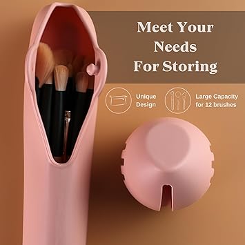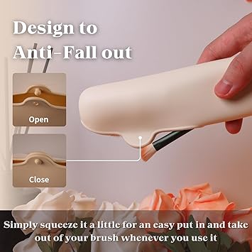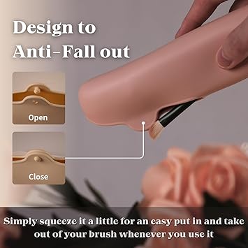 - ANTI-FALLING MAKEUP BRUSH CASE. The makeup brush bag is designed with a large opening and snap closure, easy to load and take brushes, and an additional snap design to avoid brushes falling out. High quality silicone material is safe and skin-friendly and waterproof. If lipstick cosmetics leave stains on the bag, it is extremely easy to clean, just rinse with water.