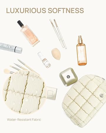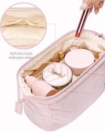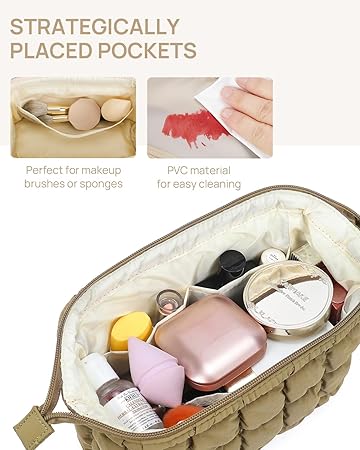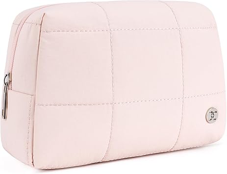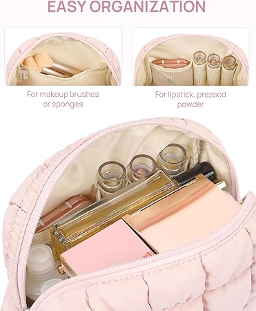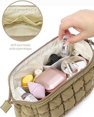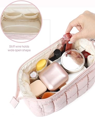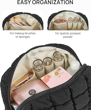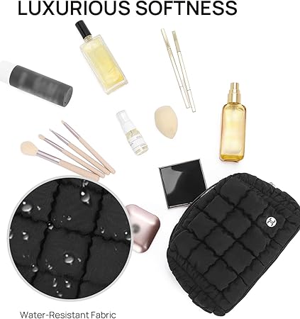 Telena Puffer Makeup Bags for Women, Nylon Puffy Padded Make Up Women Organizer Case, Wide-open Pouch Travel Essentials