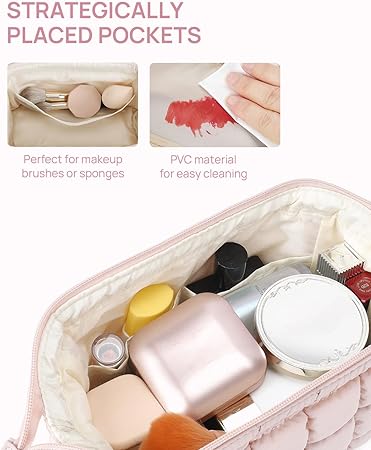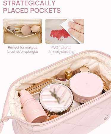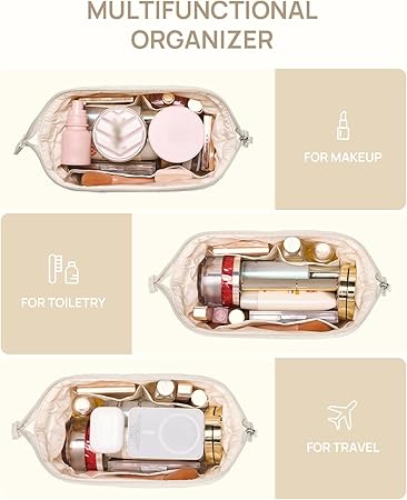 - Easier Access: With its spacious opening, this cosmetic bag allows for easy retrieval of your daily cosmetics, skincare products, and toiletry accessories. The inner multi-pocket design ensures that your cosmetics stay neatly organized