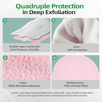 - Safe Material: Use a safe physical scrubbing method to exfoliate. The exfoliating part is made of viscose fiber. Requires no chemicals and works with just water. Also suitable for sensitive skin, provides a safe and effective exfoliation experience.
