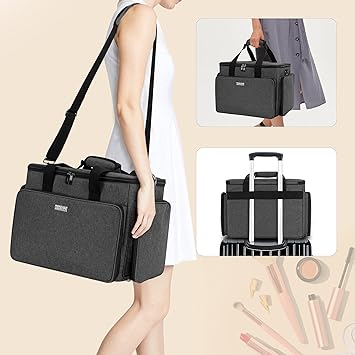 - EASY TO CARRY - Comes with an adjustable shoulder strap and sturdy top handles for travel convenience. It also has a back strap to hold it on a suitcase. Bag size: 14.5' x 9' x 11'.