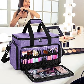 BAFASO Large Cosmetic Bag Makeup with Adjustable Dividers, Travel Case Holds Cosmetics and Hair Supplies, Purple