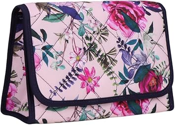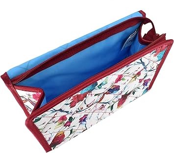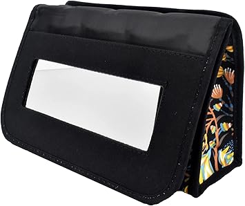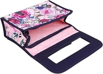 Carry your cosmetics in this cosmetic bag. Flap closure with a mirror behind the flap, plus an upper zipper closure. Spot clean, if needed. Great for organizing cosmetics in your purse!