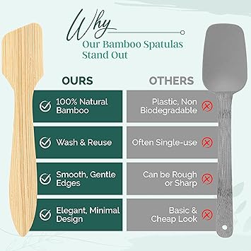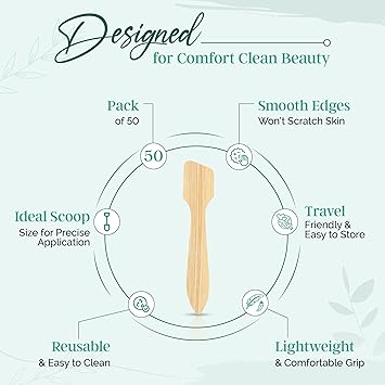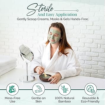 Hygienic & Convenient: These portable cream spatulas are perfect for scooping facial masks and creams, keeping the cleanliness of your skincare products without staining your fingers. Premium Bamboo Material: This face mask applicator is made of high-quality biodegradable and compostable bamboo material that is smooth, skin-friendly, safe and environmental friendly, can be used safely and disposed easily. Easy to Use: The skincare spatula is easy to apply and clean. Just scoop your skincare product on your skin, and then apply it with this facial spatula. Simply rinse with water or wipe with a towel after use. Perfect for under-eye massages, cools and reduces puffiness. Package Included: You will get 50 PIECES of bamboo cosmetic spatulas. The sufficient quantity can meet your daily needs of use and replace. Multi-Purpose Skincare Tool: The mask applicator tool is suitable for blending and applying various skincare products, such as lotions, creams, facial masks, moisturizers, eyeshadows, cleansing balm and so on. BPA FREE NO MICROPLASTICS Item Dimension: 1.7 cm x 7.3 cm (2mm thick)
