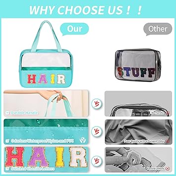 - 【Ideal Bag】Spacious space, large opening design and multifunctional, equipped with a multi color shiny Chenille letter bag with a handle, making it irresistible to any woman. This large capacity clear compact travel makeup bag is not only practical and trendy, but making it an ideal option for friends, lovers, family, birthdays, bridesmaids and other important holidays