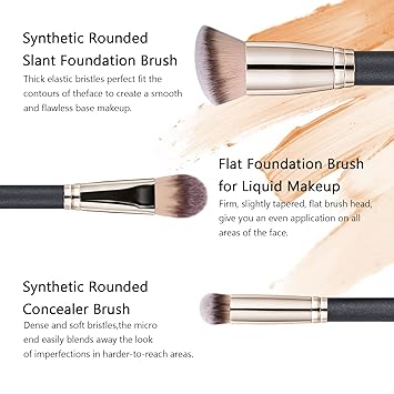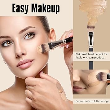 - Say goodbye to uneven and patchy coverage with our angled flat top foundation brush and concealer brush set. Designed to perfectly fit the curves of your face, these brushes help you achieve a natural, smooth, and lightweight base in no time.