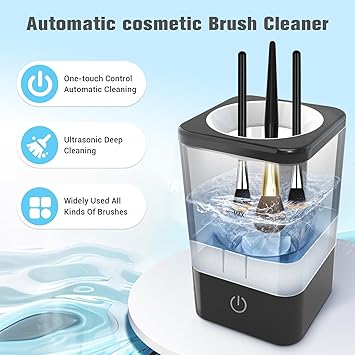 - 【Perfect for Different Brushes】Upgraded automatic makeup brush cleaner is compatible with a wide range of makeup brushes, regardless of their size or shape. From small eyeshadow brushes to larger powder brushes, it tackles them all with ease. No need to worry about damaging your brushes or using multiple cleaners for different brush types.