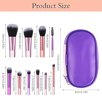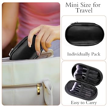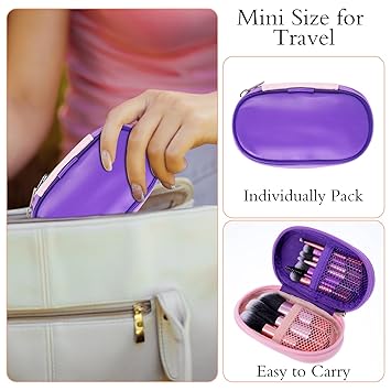 Travel Makeup Brush Set, Portable Mini Cosmetic Brushes with Case Full Complete Function Kit Pouch Foundation Eyebrow Blending Concealer Blush Eyeshadow Contour Pow(Pink)