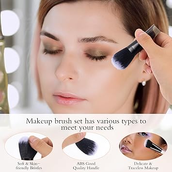 High-quality soft synthetic hair, bristles are dense and thick and can give you perfect and flawless makeup. No harm or irritation to the skin, and no shedding.