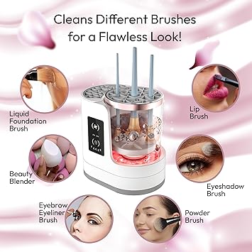 Electric Makeup Brush Cleaner Machine - 3 In 1 Automatic Make Up Brushes Cosmetic Sponge Cleanser Dryer and Storage Simply Quick Easy Cleaning Washer for Clean Hygienic Cosmetics & Beauty Essentials