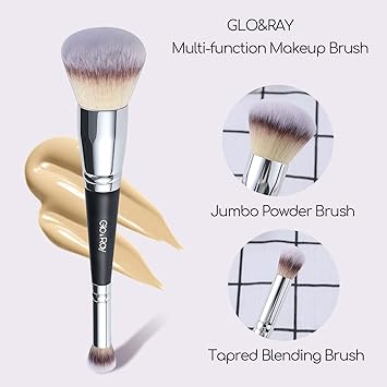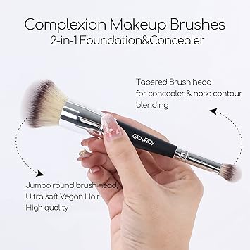 - Foundation Brushes Dual Ended:GLORAY Makeup brushes designed with dual-ended, 2-in1 brush,One for concealer brush blends your favorite concealer,eyeshadows and nose contours, and the other end pwoder foundation brush buffs and blends your favorite liquid, cream and powder foundations evenly and smoothly. Get glowing with our Complexion Makeup Brush which provides weightless, buildable coverage with all your favorite formulas for a dewy, fresher-looking complexion.