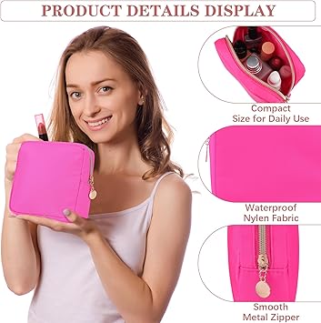- Size It Right: the cute cosmetic bag has three sizes, Mini (5 x 2 x 5 inch), Small (9.5 x 5 x 2 inch), Large (11 x 8 x 5 inch); You can choose the right size according to the items you want to store; Makeup bag can store cosmetics, sanitary napkins, lipstick, mini mirrors, jewelry, keys, cash, credit cards, and some necessities; The easy and large opening design makes it easy to take and organize your stuff easily