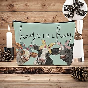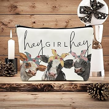 Cow Print Stuff - Western Makeup Bag, Bags For Women, Black Cosmetic Bag