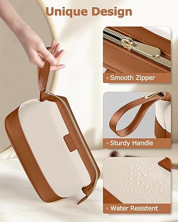 - High Qulaity Material: Made of soft and water-resistant PU leather, comfortable to touch and well protect your items, also easy to clean. The smooth zippiers and sturdy handle are ensuring the travel makeup bag long-lasting use.