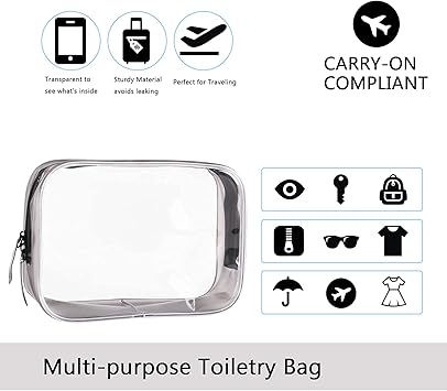 Buminee Clear Travel Bags for Toiletries, Lightweight Toiletry Bag, Multipurpose Transparent TSA Cosmetic Bag-6 Pack