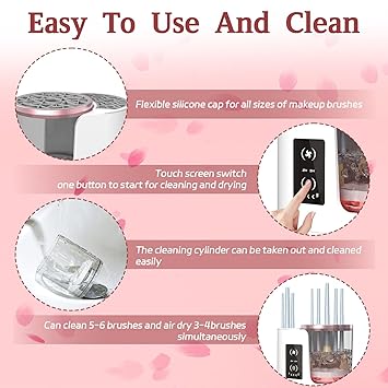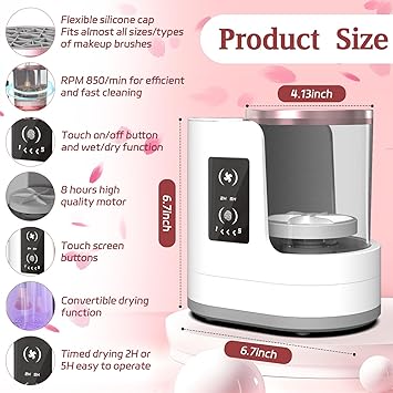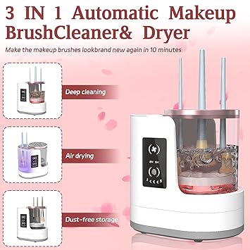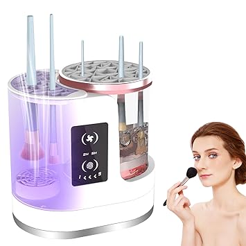 - 【Efficient Cleaning】The Makeup Brush Cleaner Machine has sufficient power. The high-speed rotating water flow, combined with the clear water and makeup brush cleaner solution and brush shampoo,brush soap cleanses,brush cleanser, can remove 98%of the makeup residue and dirt inside the cosmetic brush.Rest assured that our Makeup Brush Washer will not damage the shape and softness of your precious makeup brushes bristles