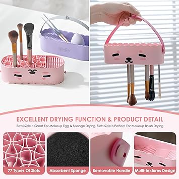 3 in 1 Silicone Makeup Brush Cleaner Bowl with Drying Holder, and Organizer Make up Mat for Brush, Sponge, Powder Puff(Panda White)