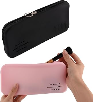 2pcs Silicone Makeup Brush Travel Case,Makeup Bag,Makeup Case,Travel Case,Portable PU Organizer,For Daily,Work Or