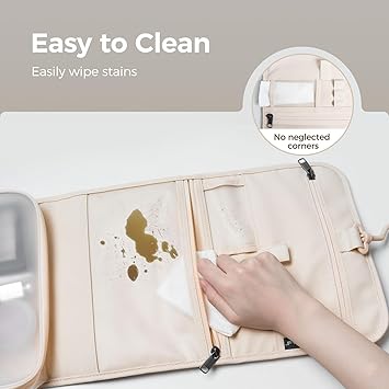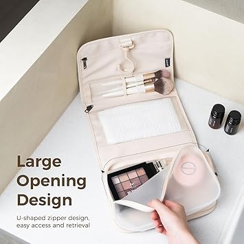 pack all Hanging Travel Toiletry Bag, Foldable Cosmetic Bag with Multiple Compartments, Water-Resistant Makeup for Toiletries, Accessories (Light Beige)