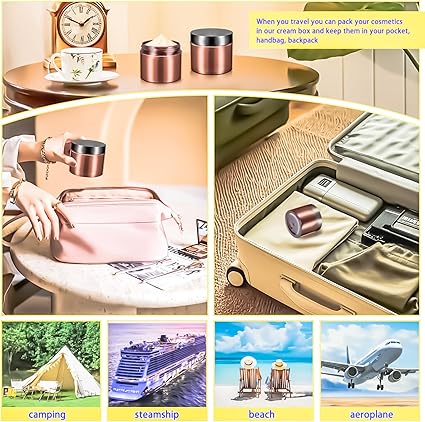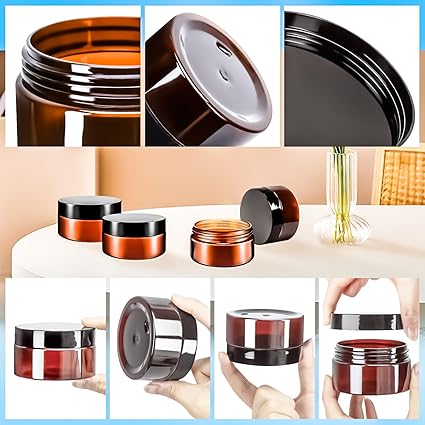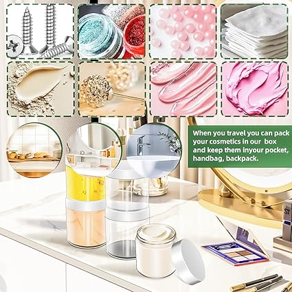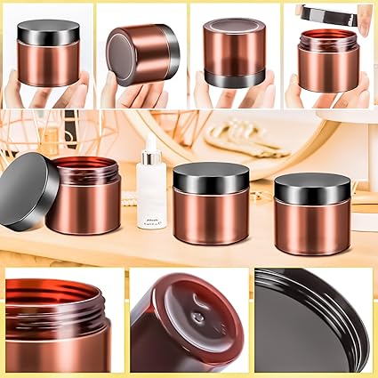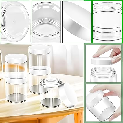 - Leak Proof: Each 4 oz plastic cosmetic container features a round srew lid to create a tight seal and will not leak. Easy to screw together and compact storage. It is very inconvenient to carry a large volume of cosmetics and skin care products when travelling.You can dispense them in our small jars and take them in your tote bags, handbag, back pack,gym bag and luggage,portable size allows them to go anywhere,very convenient