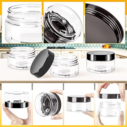 - Material: The small jars with lids are made of high-quality plastic, sturdy and durable, not easy to break, can be used for a long time, convenient to carry and you can rest assured that the use of traveling.The desigen of straight-sided and wide-mouth makes it easy and convenient for you to fill and remove