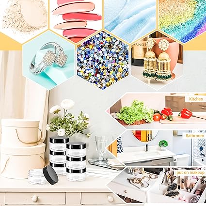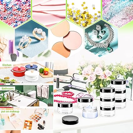 - Wide Application: These 4oz jars with lids are ideal for holding DIY creams, cosmetics,eye shadows, body lotion,lip balms, lip glosses,body butte, scrubs, nail accessories, charms, beads,earrings,sequin,DIY slime,small jewelry, loose leaf teas, coffee powder, spices, herbs, medication,party favors,candy,DIY slime or other any small DIY crafts you want,which is a wide-used and practical tool for your daily life