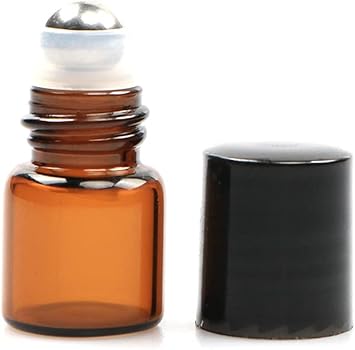 Furnido 25 Pack 1ml Amber Glass Roll on Bottle For Essential Oils,Perfume Vial with Stainless Steel Roller Ball,Black Caps Mini Sample Vials Cosmetics Small Container