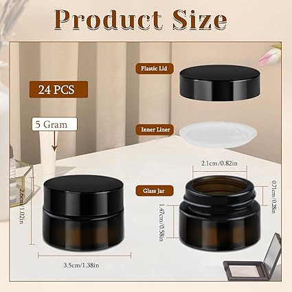 - 【What You Will Get】Package includes 24 pack 5 gram cosmetic glass jars with lids, inner liners and 12 pieces cosmetic sticks. They can be used as private sample jars, also as a good choice to be labelled as gift jars which contain homemade beauty items.