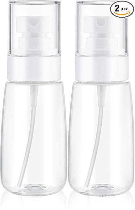 Spray Water Bottle Hair Mister, Fine Mist Stylist Sprayers 360 Empty Small Misting Spritzer, Perfume Atomizer with Pump Clear Containers 2PCS/2oz
