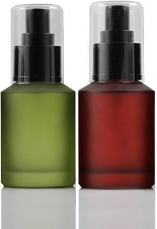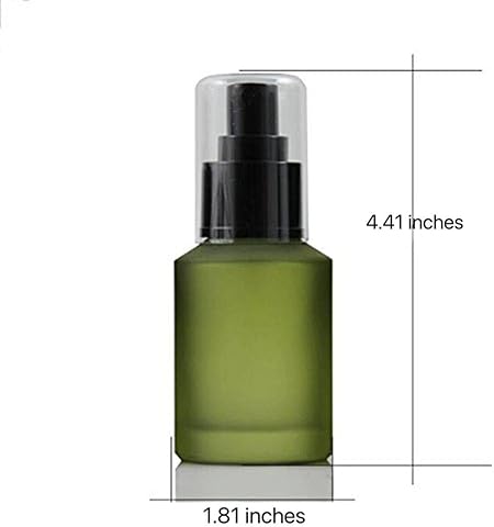 60ml/2OZ Refillable Glass Pump Bottle Frosted Green Cosmetic Makeup Emulsion Toiletries Cream Lotion Portable Dispenser Container