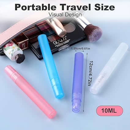 Mini Portable Spray Bottles, Refillable Perfume Bottle Travel Size Small Empty Sample Container Plastic Frosted Atomizer for Makeup Water Hair(12Pcs, 10ml/0.34 oz)