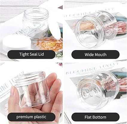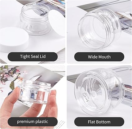 - Versatile Convenient: Suitable to store and save homemade cosmetics such as bath salt, lotions, butters, or craft accessories storage like beads, small jewelry, or kitchen use for spice or candies; You can also transfer creams, gels or serums from wholesale bottles or homemade batches into these presentable and convenient containers with labels