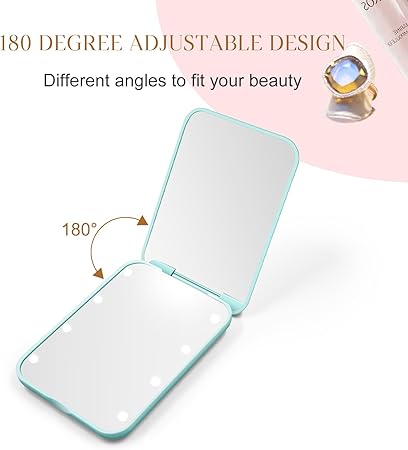 - [Stay Beautiful All the Time] - Our compact mirror is lightweight and compact, easy to carry, with a small built-in battery, which can help you save the time of charging, so that you can watch your facial makeup meticulously all the time. It's the perfect companion for you on the go. Whether you're in between makeup sessions or out and about, it can create a flawless look for you, so you can feel confident and beautiful on any occasion.