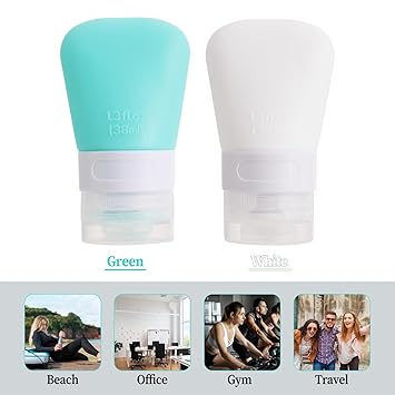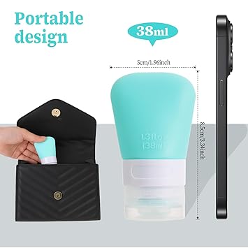 2 Pack 1.3oz Leak Proof Refillable Squeeze Containers, Silicone Travel Bottles for Toiletries, Portable Cosmetic Shampoo, Conditioner, Lotion (38ml)