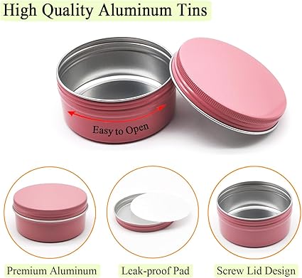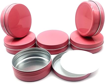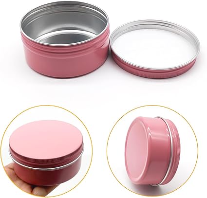 Wopanxye 6pack 150g/150ml Pink color aluminum refillable container tins with screw up lids and leak-proof foam pads inside.