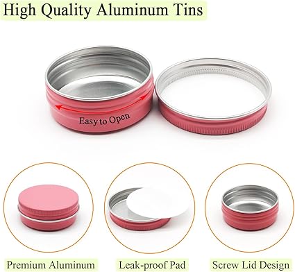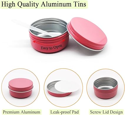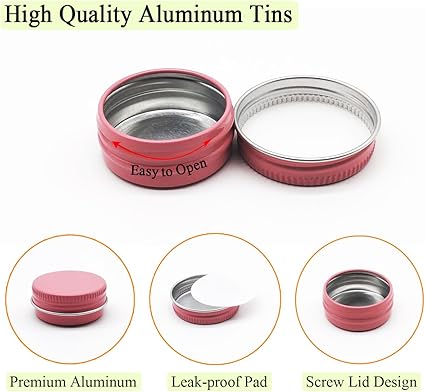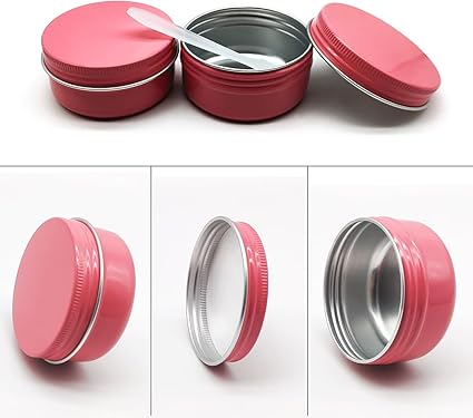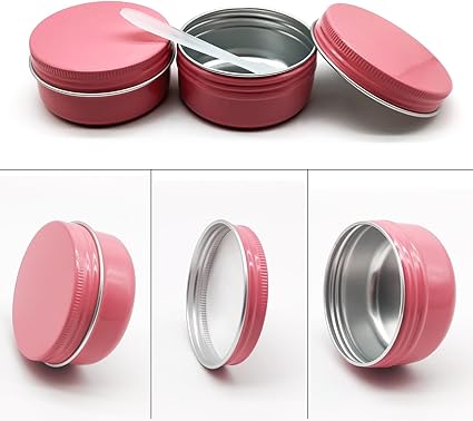 These small aluminum jars, look stylish and cute, are perfect for mixing or sampling skin care cosmetic, such as eye shadows, bath lotions, hair wax, lip balms, toners, creams, ointments, nails, acrylic powder, scrub, salve, hand cream, pomade.