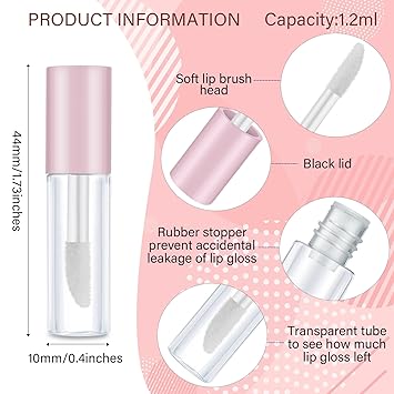 Feature: Multiple advantages: These empty lip balm containers are easy to carry and reusable, featured with leak-proof and good sealed, so don't worry about your makeup spilling, the mini size saves you a lot of luggage space and burden, suitable for travel, business trips or vacations. Nice gift: Our clear mini lip gloss tubes are small and exquisite, which can be given as a good gift to your girlfriend, mother, relatives and more, it can show your thoughtfulness, and increase your relationship with them. Specifications: Capacity: 1.2 ml Color: as pictures shown Quantity: 100 pieces Package includes: 100 x Clear mini lip gloss tubes Note: Please don't overfill cosmetic into these tube, 1.2 ml is recommended. Please allow slight errors on size due to manual measurement. Small and inedible items include, please keep away from kids.