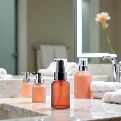 Introducing our 1Pc Brown Frosted Glass Pump Bottles - the perfect refillable containers for all your liquid toiletries and cosmetic needs! These sleek and stylish 30ml bottles are ideal for travel, allowing you to carry your favorite lotions, shampoos, and makeup products with ease. The frosted glass design adds an elegant touch, while the pump dispenser ensures a mess-free and controlled application every time. Lightweight and durable, these bottles are a must-have for anyone on-the-go. Whether you're packing for a weekend getaway or simply looking to declutter your bathroom, these versatile containers offer a convenient solution for organizing and transporting your beauty essentials. Upgrade your travel experience with our premium glass pump bottles today!
