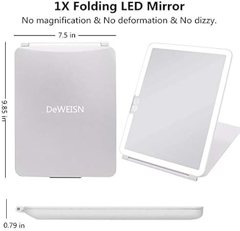 deweisn Folding Lighted Makeup Mirror with 72 LEDs 3 Colors Light Modes USB Rechargable 1800mA Batteries Portable Ultra Thin Compact Vanity Dimmable Travel