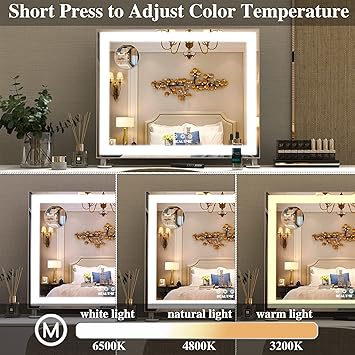 - 3 colors Lights - Warm light ( 3200K color temperature) / daylight (6500K color temperature) settings and adjustable brightness. Provide enough brightness to makeup in dark. It is soft and not dazzling.