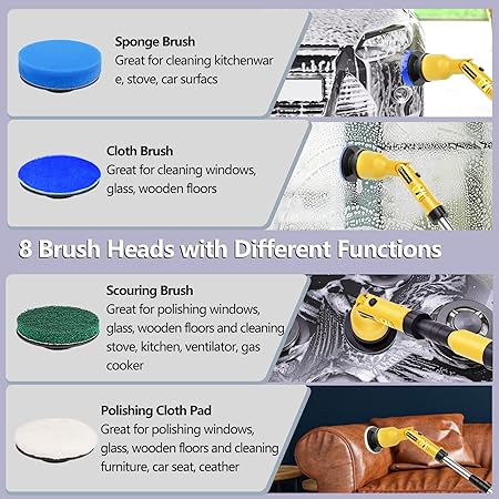 Versatile application: These 8 spin brush heads replacement can be used to clean various surfaces in your home. For example, they can clean recessed areas, tight and hard-to-reach areas such as nooks and crannies (wood floors, walls, pools, faucets, edges, wood floors, furniture, bathtubs, glass, windows, stoves, sinks, car seats, car surfaces, or wheels)