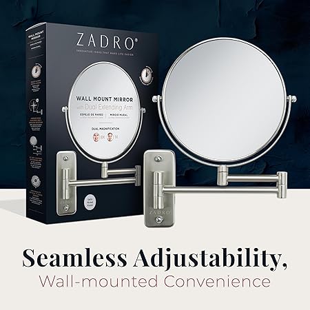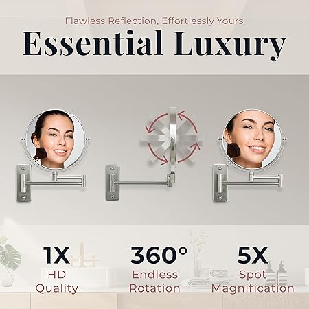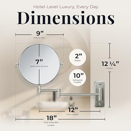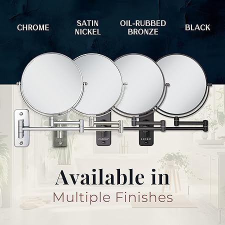 Looking our best requires reflecting the best from doing your hair and makeup has never been easier. Select from either a 5-time or 8-time magnifying wall mounted makeup mirror without light features dual-sided optical quality glass to ensure a clearer reflection of your true self. On one side, the 5 times or 8 times magnification is great for viewing up close in detail while still allowing you to see your entire face. On the other side, the 1 time magnification is perfect for all-around hairstyling, cosmetic application, and every beauty need in between. Plus, its dual-jointed arm extends up to 18 inches for simple ergonomic positioning and easy viewing.