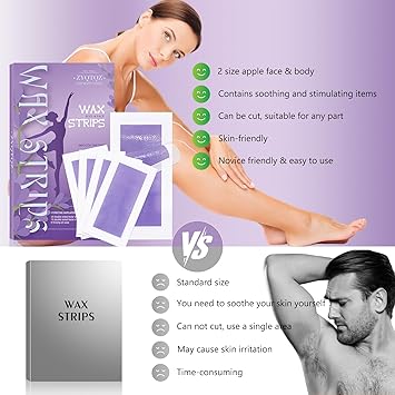 The ZYQTQZ WAX STRIPS kit includes: 40 body strips, 20 facial strips, and 10 finishing oil wipes.